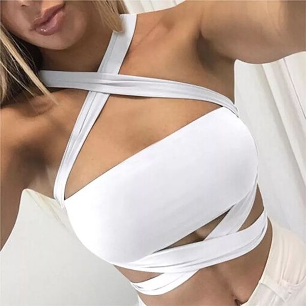 Бяла блуза тип бюстие с преплетени презрамки C0539