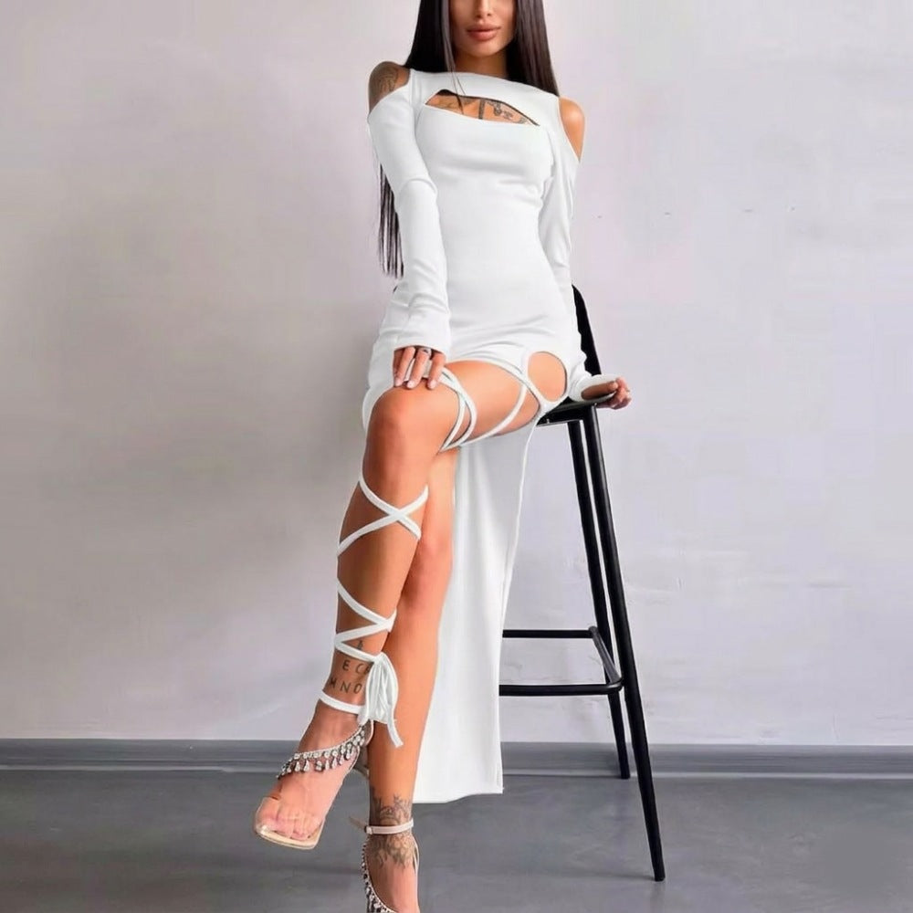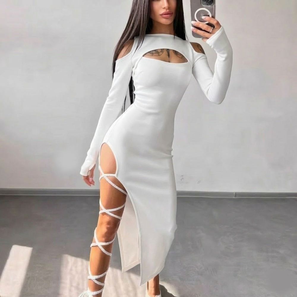 Направи впечатление с тази бяла рокля с дълъг ръкав, изрязани рамене и атрактивна висока цепка! Създадена за жени с характер, тя е идеална за вечерно парти, клуб или специална фотосесия. Еластичната материя осигурява комфорт, а изчистеният силует с уникален дизайн подчертава фигурата. Поръчай сега от Chicca и се открои със смел и модерен стил!