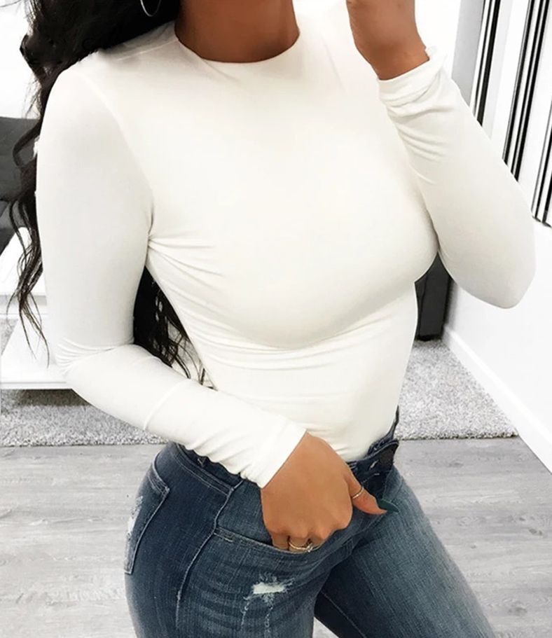 Бяла дамска блуза с дълъг ръкав и изчистен силует C0510