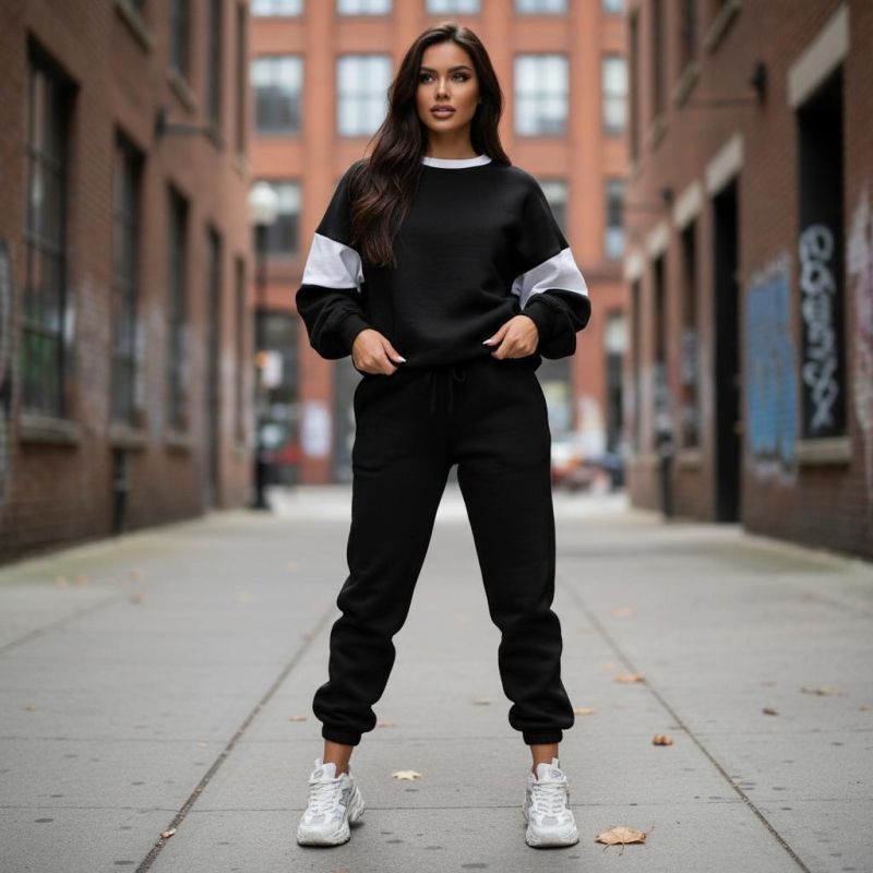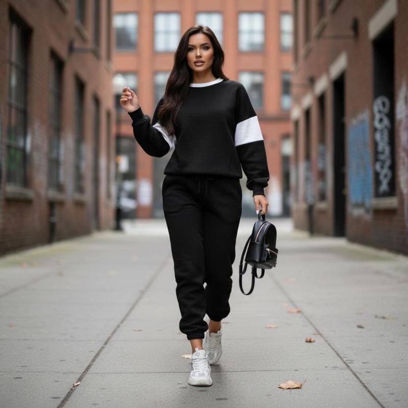 Черен спортен комплект с бели акценти C0361