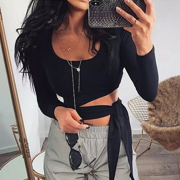 Черна асиметрична блуза и връзка в талията C0505