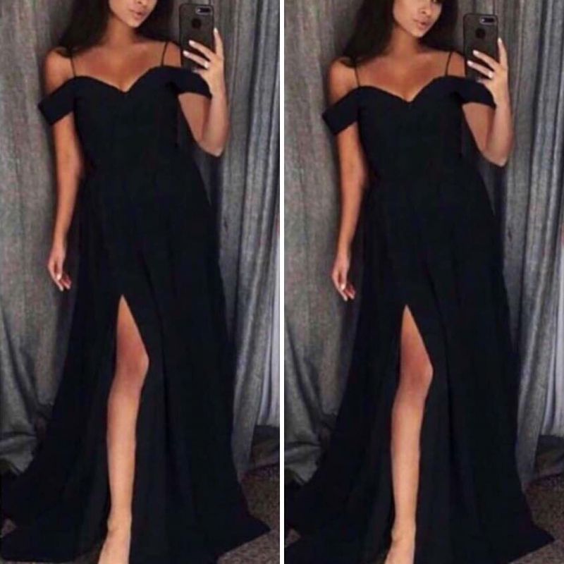 Черна дълга официална рокля с паднали рамене C0405