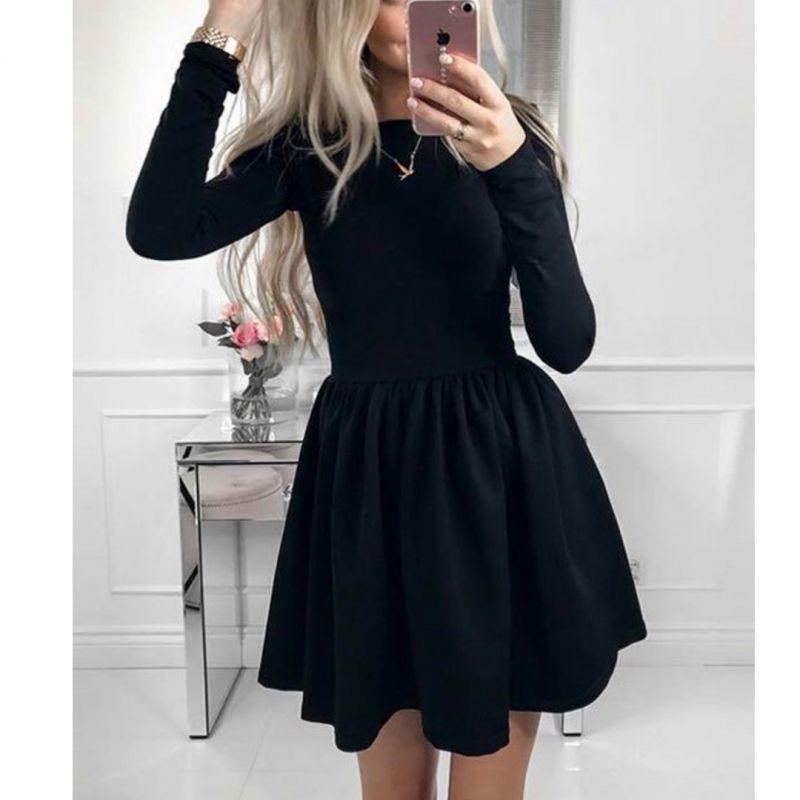 Черна разкроена рокля с дълъг ръкав и висока талия C0394