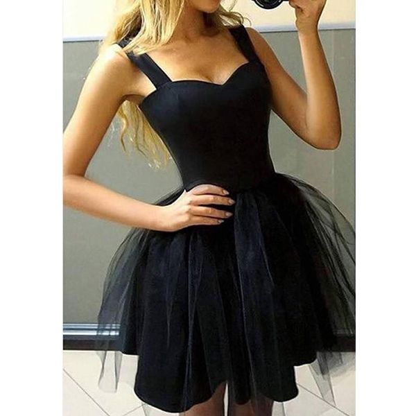 Черна рокля с широки презрамки и тюлена разкроена пола C0448