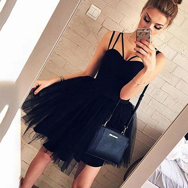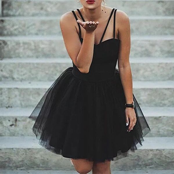 Черна рокля с тюлена пола и тънки презрамки C0359