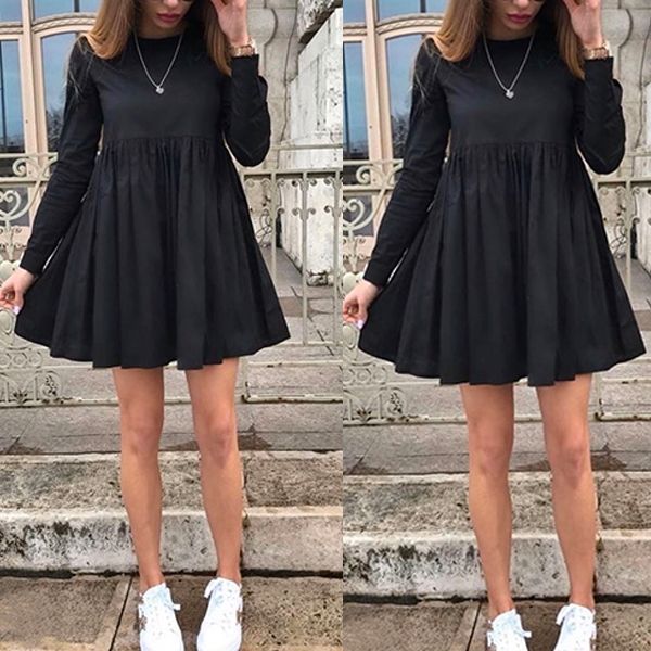 Черна свободна рокля с дълъг ръкав и А-силует C0372