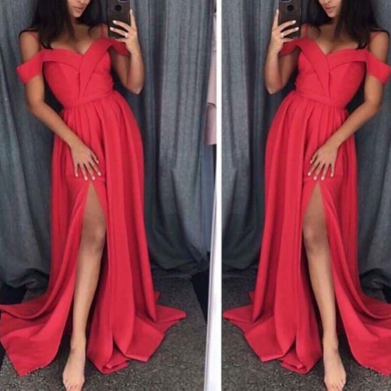 Червена дълга официална рокля с паднали рамене C0404