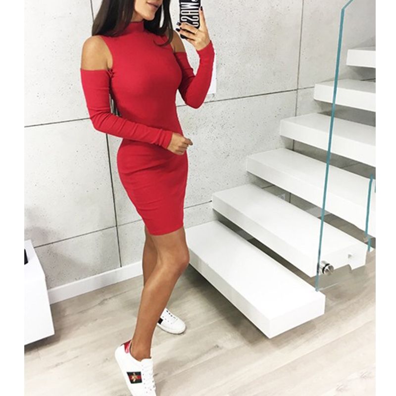 Червена рокля с открити рамене и дълъг ръкав C0382