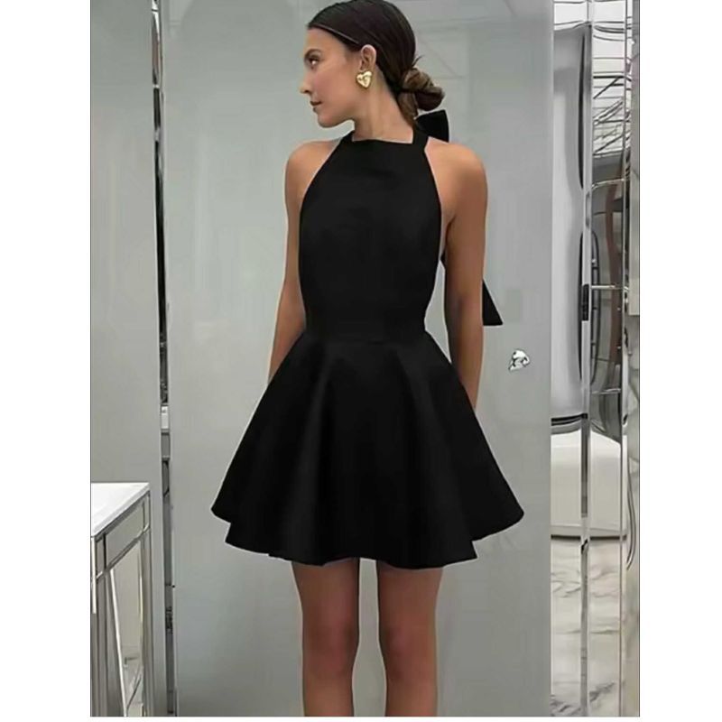 Тази елегантна черна рокля е създадена за жени, които искат да бъдат в центъра на вниманието. С къса и разкроена кройка, тя подчертава талията и придава женствен силует. Най-впечатляващият акцент е отвореният гръб, завършен с красива панделка, която добавя изисканост и чар. Изработена от висококачествена материя, роклята е удобна за носене и подходяща за партита, официални вечери или коктейли. Малката черна рокля с модерен дизайн е класически избор за всяка специална вечер.